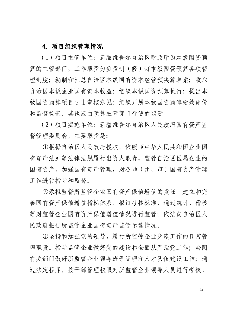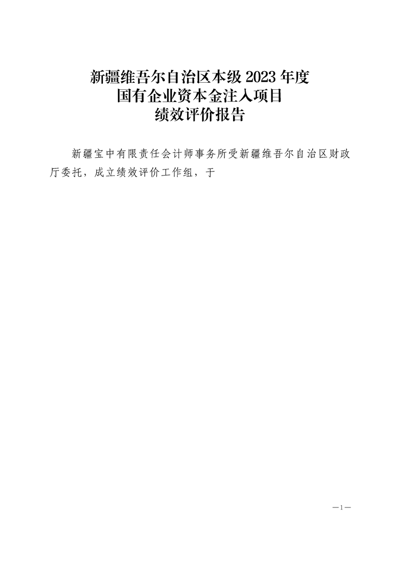 新疆维吾尔自治区本级2023年度国有企业资本金注入项目绩效评价报告