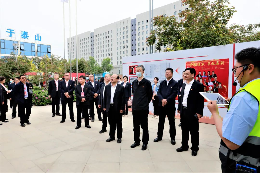 与会人员在机场工程交通中心项目施工现场观摩“建证”党建品牌,通过现场讲解、电子阅览、资料查阅等方式,深入了解中建新疆建工坚持党建引领、注重党建赋能、推动融合发展的党建和经营成果。