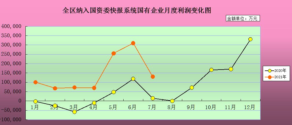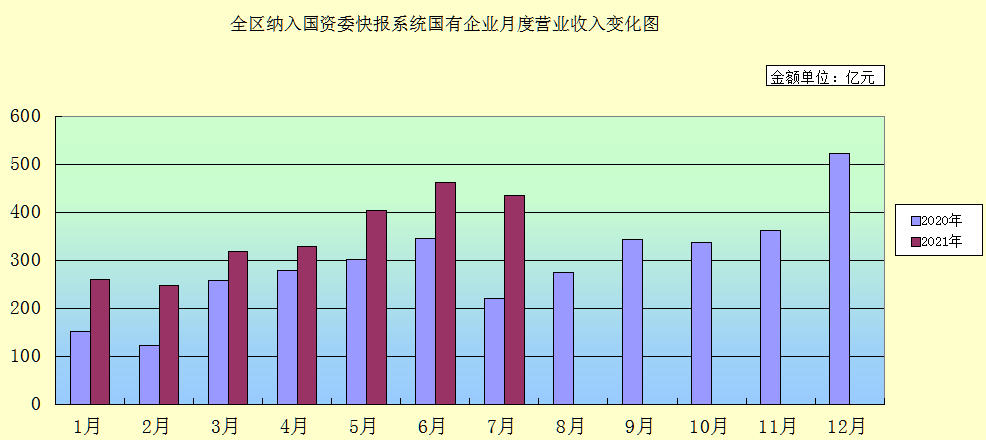 截至2021年7月末,全区纳入nba盘口 财务快报范围(含区属金融企业)的国有企业资产总额29077.93亿元,同比增长9.75%;净资产9170.87亿元,同比增长10.19%;1-7月实现营业收入2462.57亿元,同比增长41.87%;实现利润总额100.59亿元,同比增加利润90.9亿元;上交税费107.6亿元,同比增长42.13%。
