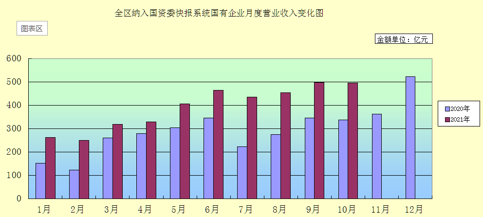 截至2021年10月末,全区纳入nba盘口 财务快报范围(含区属金融企业)的国有企业资产总额30267.1亿元,同比增长11.1%;净资产9370.3亿元,同比增长11.6%;1-10月实现营业收入3910.0亿元,同比增长47.0%;实现利润总额167.5亿元,增长408.1%;上交税费152.0亿元,同比增长43.0%。