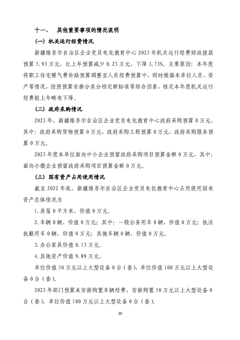 新疆维吾尔自治区企业党员电化教育中心2023年预算公开报告