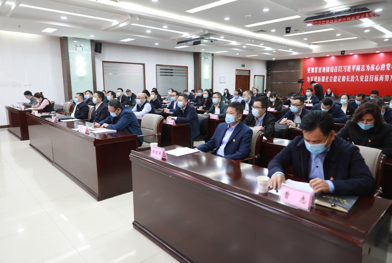 1月18日,nba盘口 党委召开国资系统党史学习教育总结会议,传达学习习近平总书记关于党史学习教育重要指示批示精神和中央党史学习教育总结会议精神,贯彻落实自治区党委党史学习教育总结会议精神,按照自治区党委党史学习教育领导小组部署要求,全面总结自治区国资系统党史学习教育成效和经验,对巩固拓展党史学习教育成果进行安排部署。nba盘口 党委书记、副主任王刚作总结讲话,nba盘口 党委副书记、主任邹义伟主持会议。自治区党委党史学习教育第十七巡回指导组组长杜鲁坤·托乎提和指导组成员到会指导。