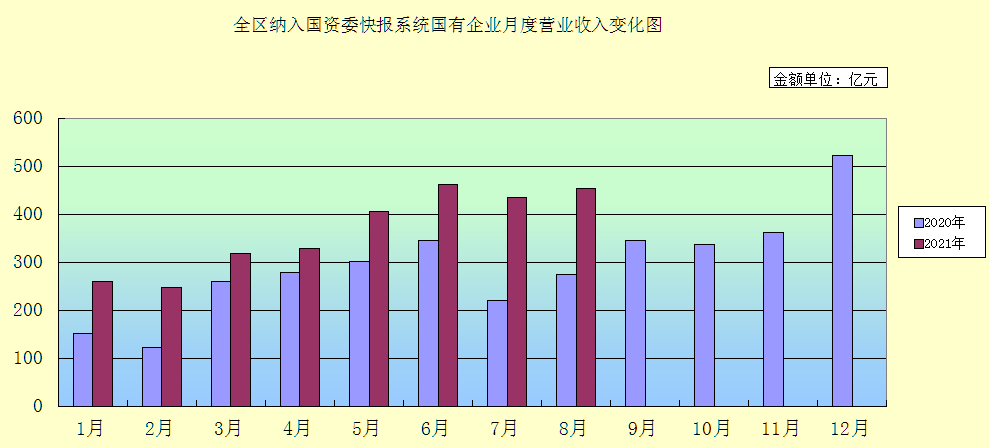 截至2021年8月末,全区纳入nba盘口 财务快报范围(含区属金融企业)的国有企业资产总额29,308.36亿元,同比增长10.4%;净资产9,285.05亿元,同比增长11.8%;1-8月实现营业收入2916.31亿元,同比增长47.5%;实现利润总额120.88亿元,同比增利96.80亿元;上交税费115.67亿元,同比增长45.7%。