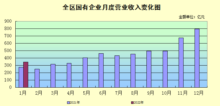 截至1月末,全区国有企业资产总额31419.78亿元,同比增长11.8%;净资产10235.48亿元,同比增长13.2%;1月实现营业收入346.63亿元,同比增长22.9%;实现利润总额14.51亿元,同比增长19.6%;上交税费29.91亿元,同比增长47.6%。