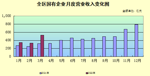 截至3月末,全区国有企业资产总额32213.35亿元,同比增长12.45%;净资产10344.85亿元,同比增长12.47%;一季度累计实现营业收入1213.93亿元,同比增长44.47%;实现利润总额43.34亿元,同比增长78.04%;上交税费50.08亿元,同比增长52.22%。