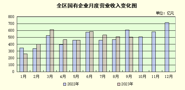 截至9月末,纳入nba盘口 财务快报范围的国有及国有控股企业资产总额37,756.56亿元,同比增长9.4%;净资产12,658.14亿元,同比增长8.9%;1-9月实现营业收入4,350.87亿元,同比增长4.3%;实现利润总额150.33亿元,同比减少利润7.37亿元,下降4.7%;上交税费166.62亿元,同比下降2.5%;平均资产负债率66.5%,同比上升0.2个百分点。