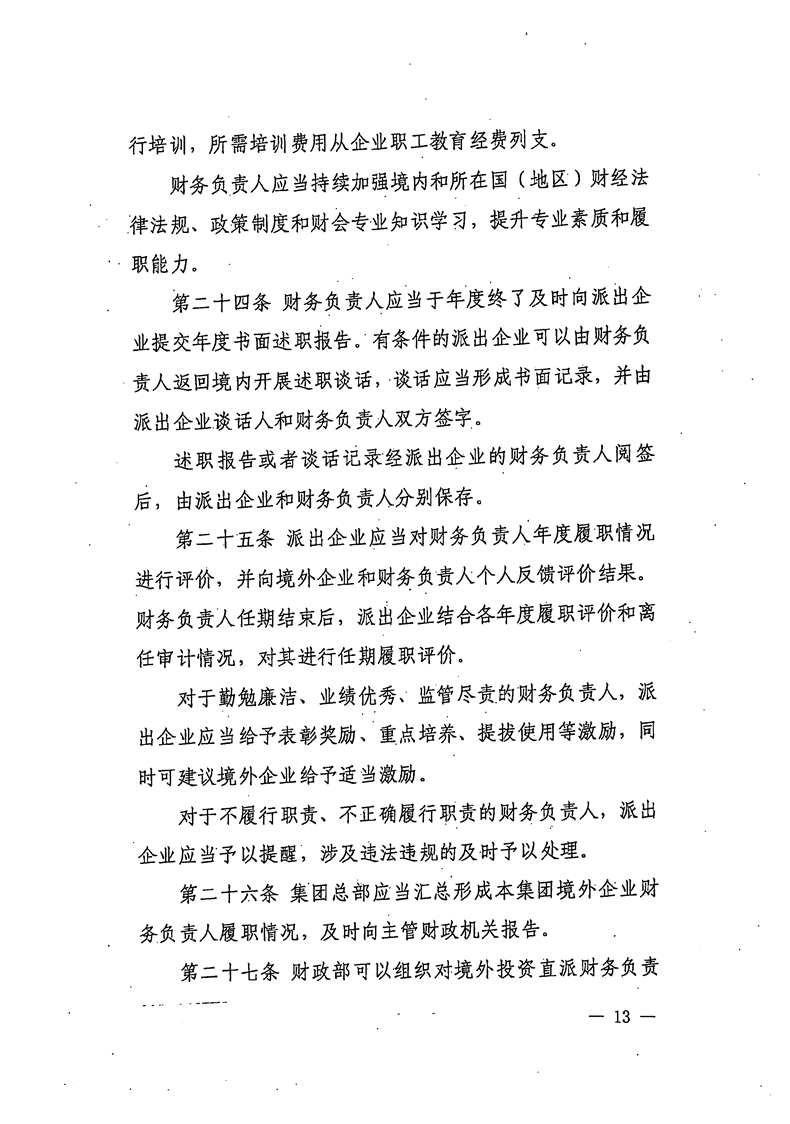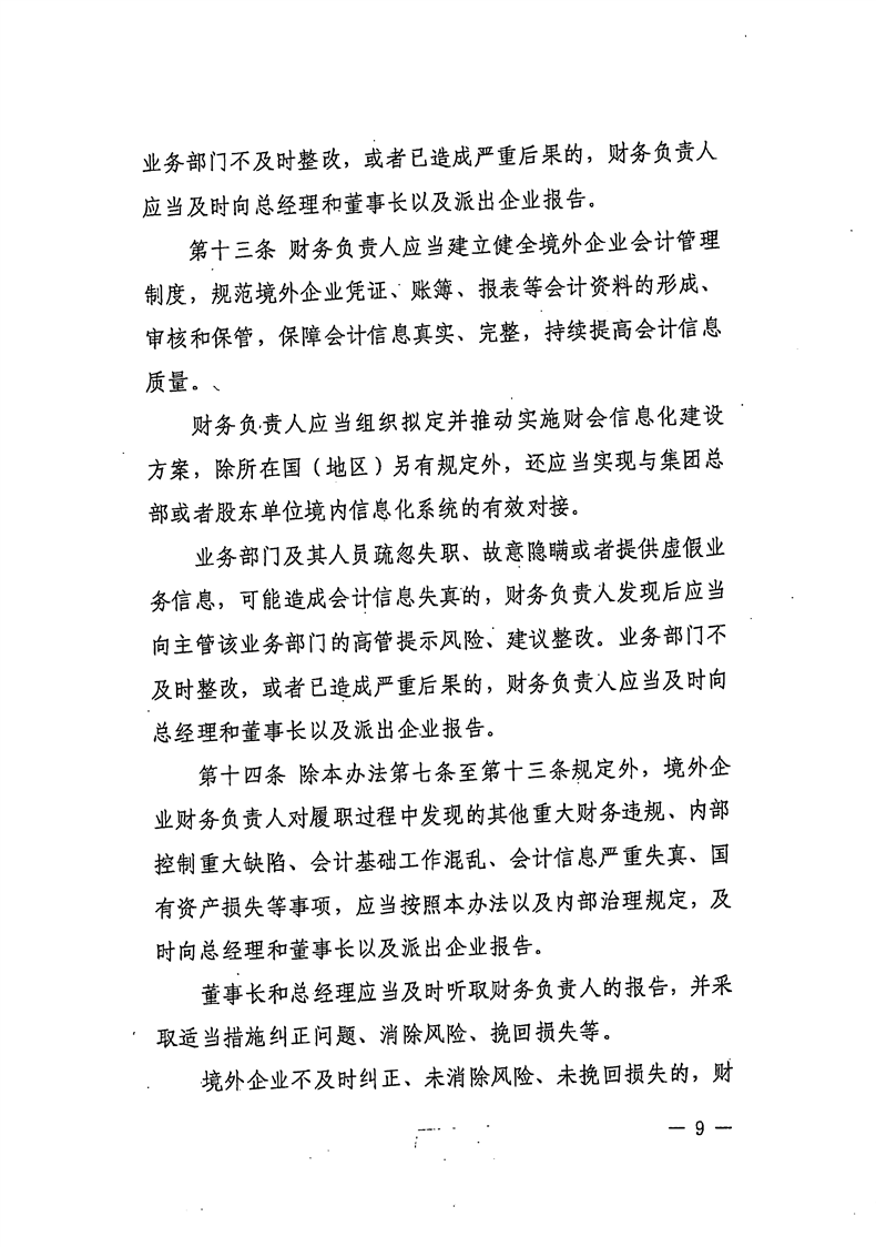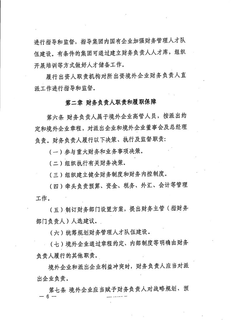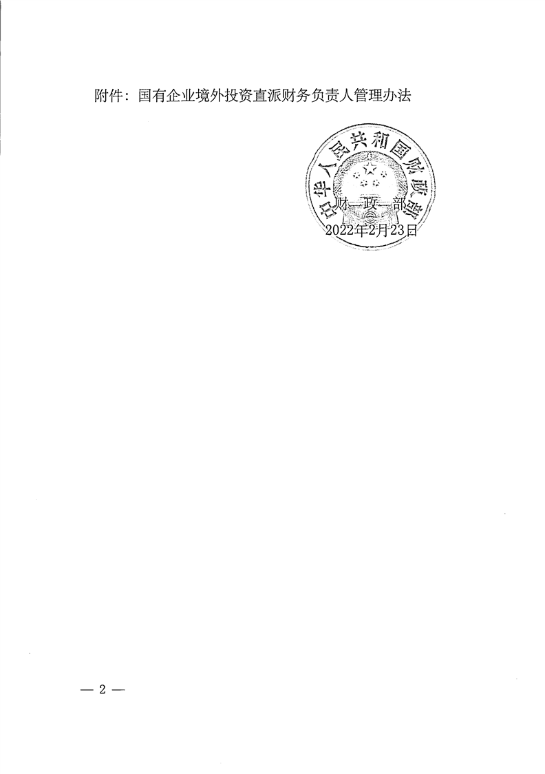 关于公开《国有企业境外投资直派财务负责人管理办法》的函